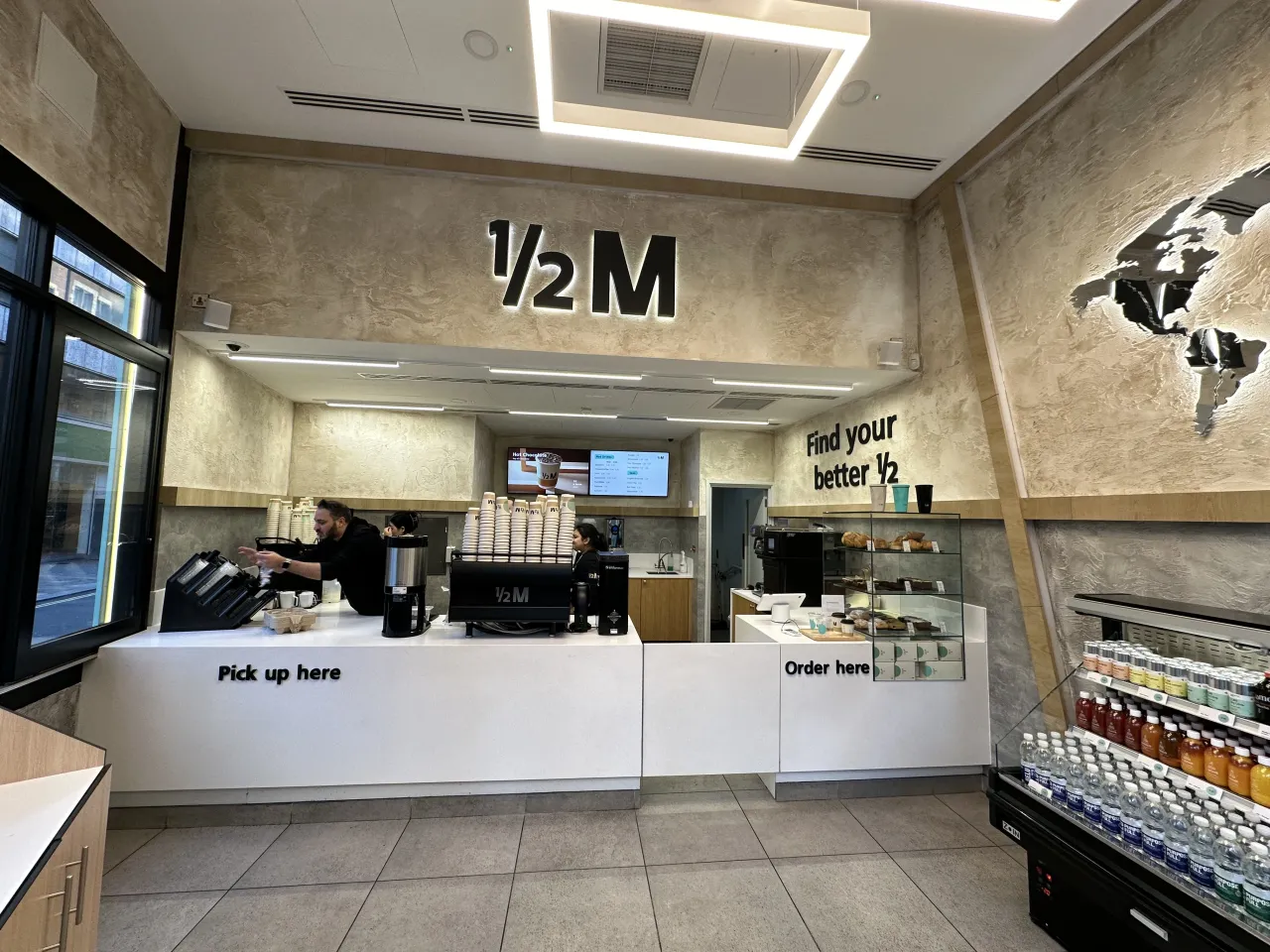 The client, Half Million, is a Saudi Arabian coffee shop brand with twenty-nine shops in Saudi Arabia. The client was keen to open a London flagship ‘grab and go’ style coffee shop on Oxford Street opposite the well-known Selfridges store. RENU DM was appointed in July 2023 to advise on the lease, mobilise a consultant team and translate 1/2M’s vision into deliverable design and procurement. RENU DM secured the necessary consents, negotiated a construction contract and delivered the scheme in a challenging location, all within five months from start to finish.