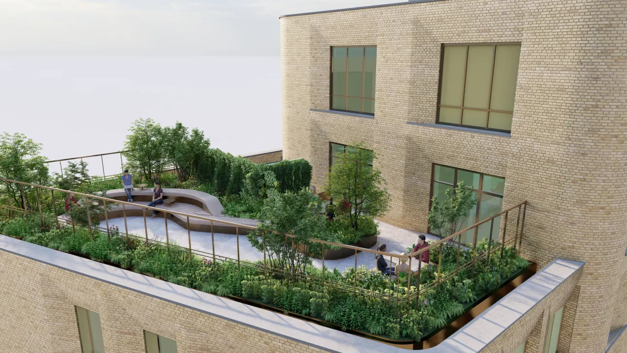 The proposal reimagines the site as a vibrant, community facing destination, incorporating a 14-storey tower, a new ground floor library for the neighbouring Irish Cultural Centre, and a private rooftop terrace for residents.